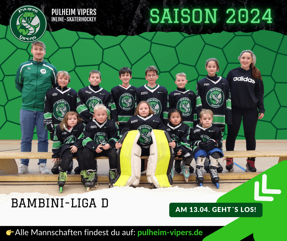 Das jüngste Team der Pulheim Vipers sind die Bambinis. Hier sind aktuell die Jahrgänge 2018 bis 2015 vertreten. Unsere Trainerin Pia Graziani und ihr Co-Trainer Jan Esch kümmern sich mit vollem Einsatz um unseren Nachwuchs.