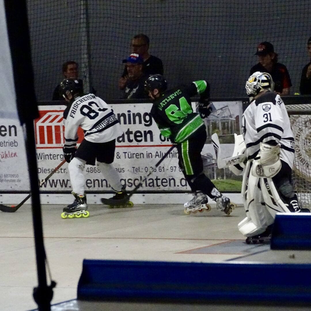 Pulheim kam besser aus der Kabine und nach 11 Sekunden im 2. Abschnitt stand es 3:1 für die Vipers. Duisburg drückte aber weiter auf das Tor der Vipers und konnte nicht nur ausgleichen, sondern ging auch mit 3:4 erstmalig in Führung.