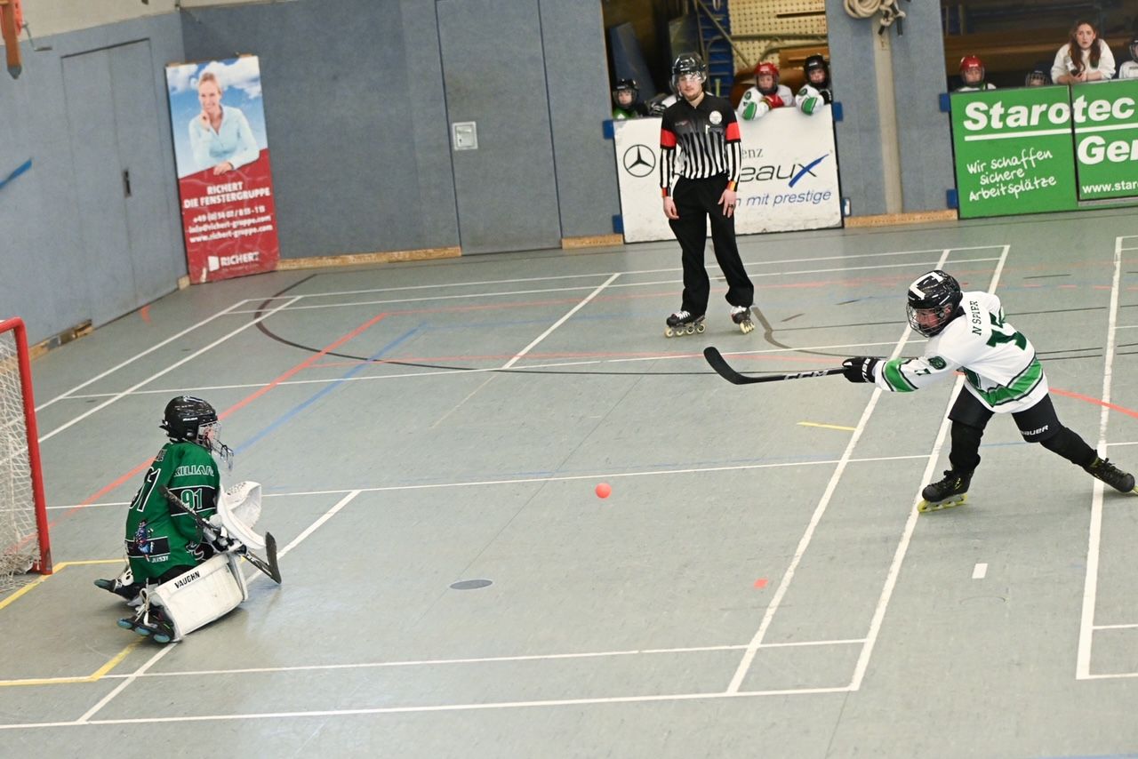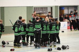 In das folgende, letzte Drittel dieses Krimis starteten beide Mannschaften hoch motiviert und es gelang den Vipers bereits nach wenigen Sekunden endlich wieder in Führung zu gehen. Diese Führung galt es nun zu halten und gegeben falls auszubauen. Die Pulheimer Verteidigung kämpfte gegen die Angriffe der Monheimer, die nun den Ausgleich erzielen wollten. Doch erneut schafften es die Vipers, sich abzusetzen und ein weiteres Tor zu erzielen. Dieses laufintensive Spiel forderte den seinen Tribut von den Bambinis beider Mannschaften, doch kurz vor dem vermeidlichen Sieg erzielten die Skunks den Anschlusstreffer. Hierdurch motiviert musste die Verteidigung der Vipers alles geben, um den Angriffen der Skunks standhalten zu können. Die Fans beider Mannschaften fieberten dem Ende entgegen. Die Minuten und Sekunden wurden gezählt. Schließlich nahmen die Skunks ihren Goalie heraus und versuchten den Ausgleich mit einem Überzahlspiel zu erobern. Die Pulheimer gaben alles, um die Überzahl zu bestehen und die Anspannung die von den siegreichen Bambinis nach diesem Krimi abfiel war deutlich spürbar. Das Spiel endete knapp 7:6 für die Bambinis aus Pulheim.